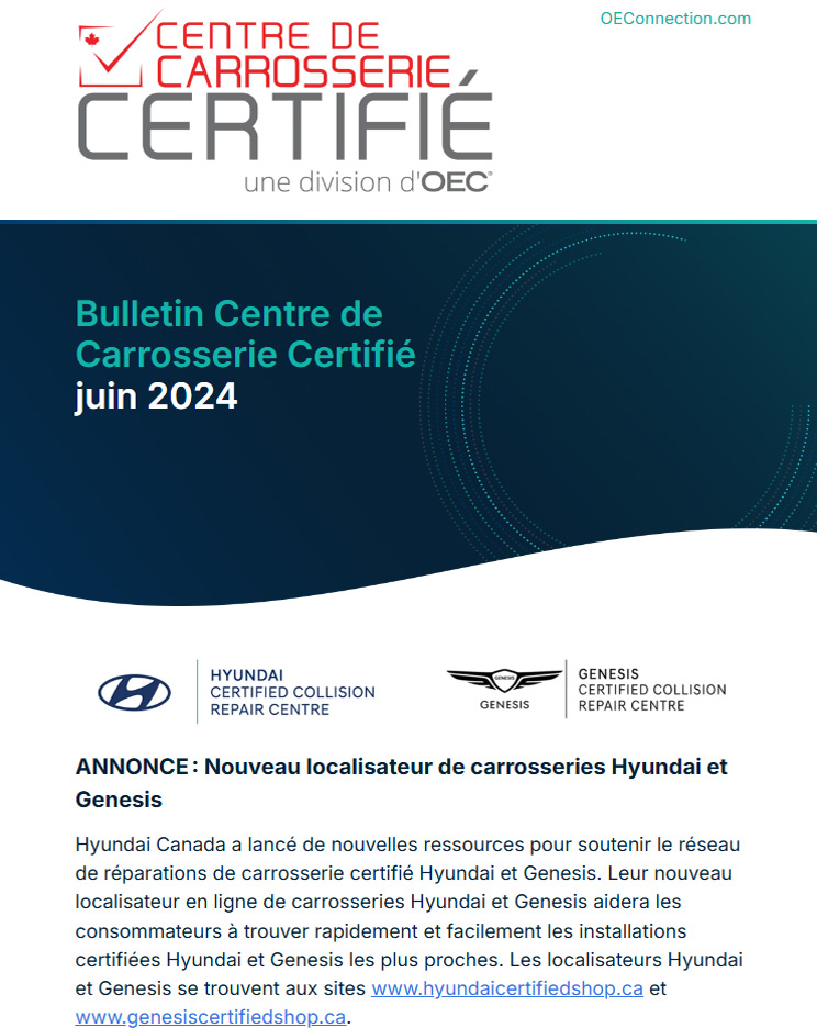 Bulletin – Centre de Carrosserie Certifié – juin 2024 September 10, 2024 Cliquez ici pour voir le bulletin d’information complet !